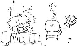 「間に合った」と思った、そう思ってる自分に気付いた・・・・なんて、兄の話を思い付いたんだけど、ホラ俺兄もとまも2頭身しか描けないから!(爆)こんなの漫画にするなんてとてもとても。